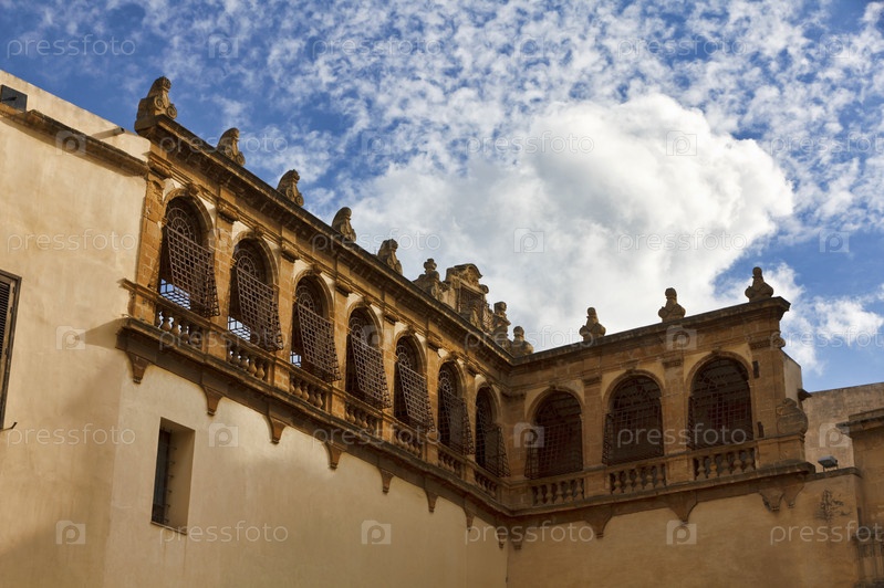 Италия, Сицилия, Мадзара дель Валло (провинция Трапани), окна в стиле барокко на фасаде собора на площади Республики