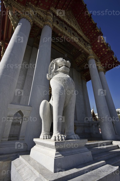 Таиланд, Бангкок, район Дусит, Мраморный храм, статуя льва у входа