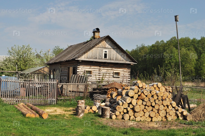 Дрова перед домом в деревне