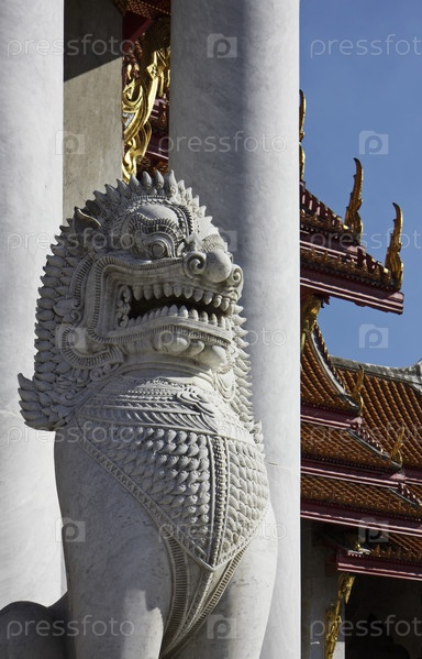 Один из двух мраморных Львов на входе храма