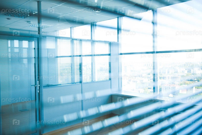 Изображение коридора в офисном здании с большими окнами, пропускающими дневной свет