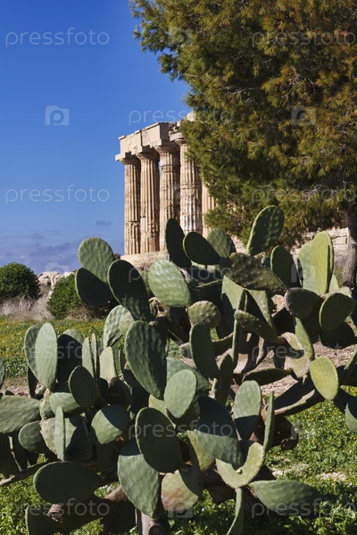 Италия, Сицилия, Селинунт, греческий храм Геры (409 до н.э.) и опунции