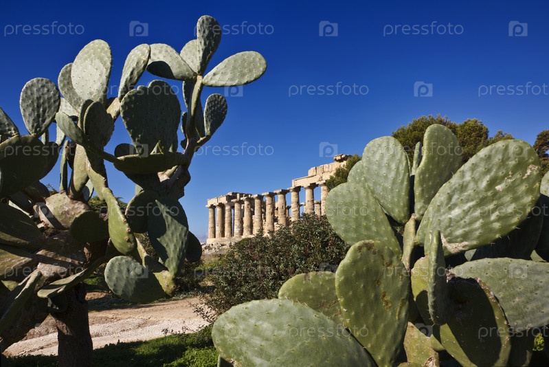 Италия, Сицилия, Селинунт, греческий храм Геры (409 до н.э.) и опунции