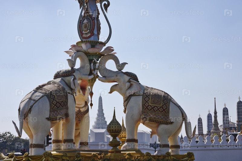 Таиланд, Бангкок, три белых слона и Имперский город на заднем плане