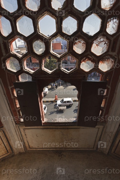 Индия. Раджастхан, Джайпур, Дворец ветров (Хава-Махала), построен в 1799 году Махараджой Савайем Пратапом Сингхом, задний фасад