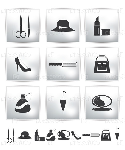Набор векторных значков с изображением женских принадлежностей