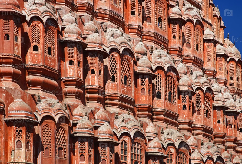 Индия. Раджастхан, Джайпур, Дворец ветров (Хава-Махала), построен в 1799 году Махараджей Савайем Пратапом Сингхом, вид парадного фасада