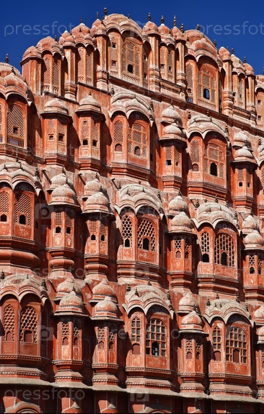 Индия. Раджастхан, Джайпур, Дворец ветров (Хава-Махала), построен в 1799 году Махараджей Савайем Пратапом Сингхом, вид парадного фасада