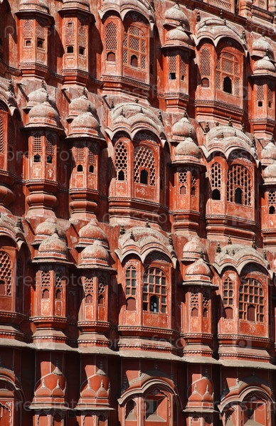 Индия. Раджастхан, Джайпур, Дворец ветров (Хава-Махала), построен в 1799 году Махараджей Савайем Пратапом Сингхом, вид парадного фасада