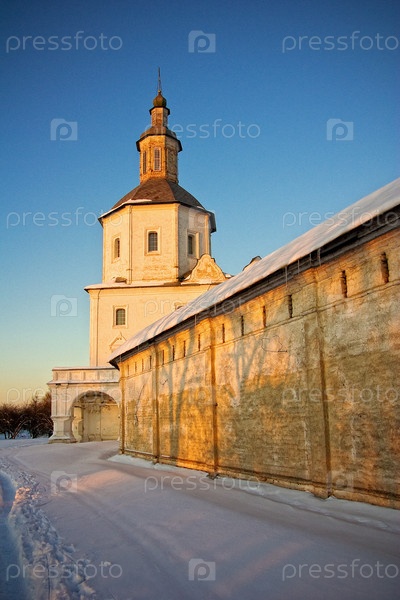Стена Свенского монастыря в закатном солнце