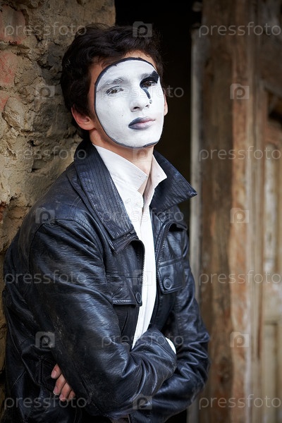 Мим на фоне старой кирпичной стены