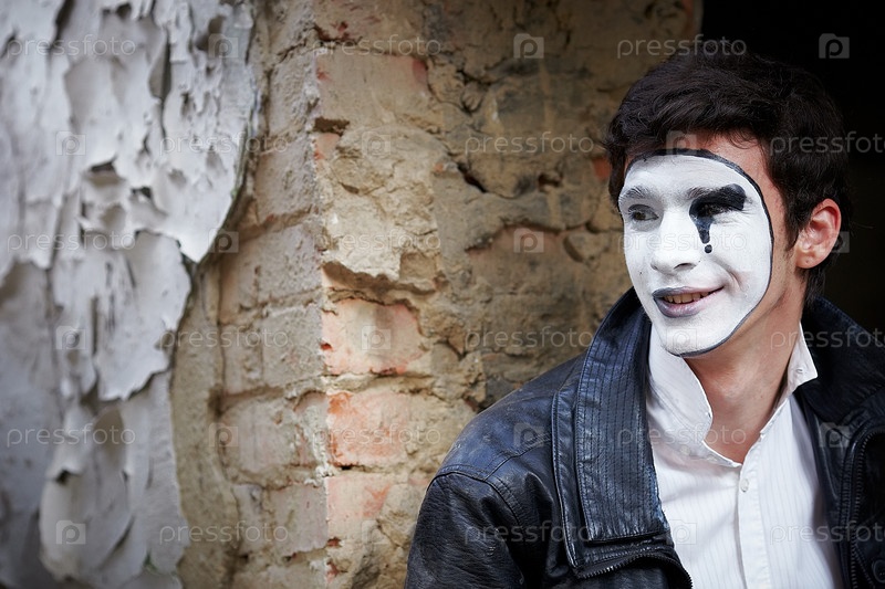 Мим на фоне старой кирпичной стены