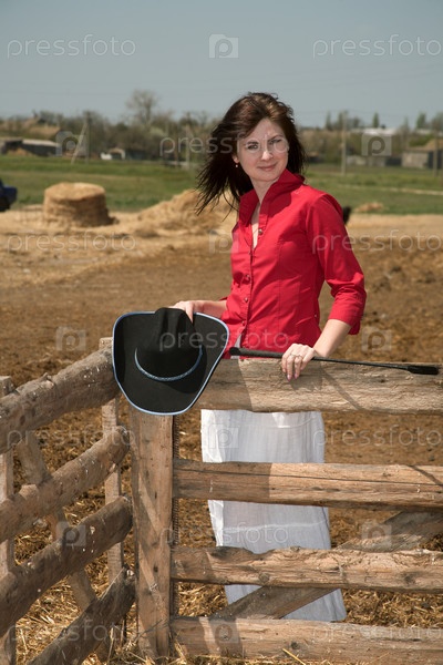 Портрет красивой девушки на фоне фермы