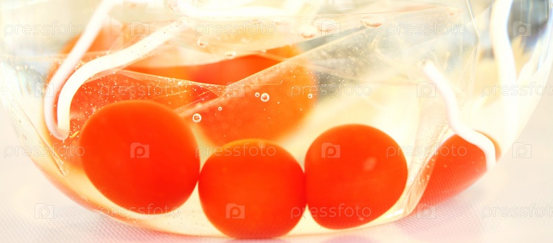 Ваза с пленкой, трубками и шариками в воде