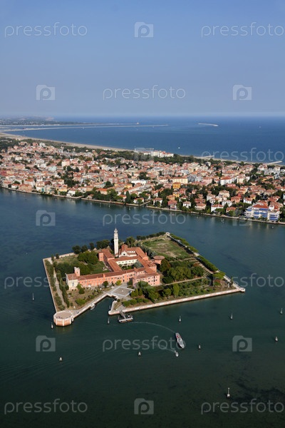 Италия, Венеция, остров Мурано, остров Сан-Ладзаро дельи Армени и Венецианская лагуна. Аэрофотоснимок
