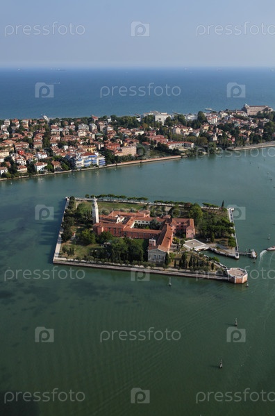Италия, Венеция, остров Мурано, остров Сан-Ладзаро дельи Армени и Венецианская лагуна. Аэрофотоснимок