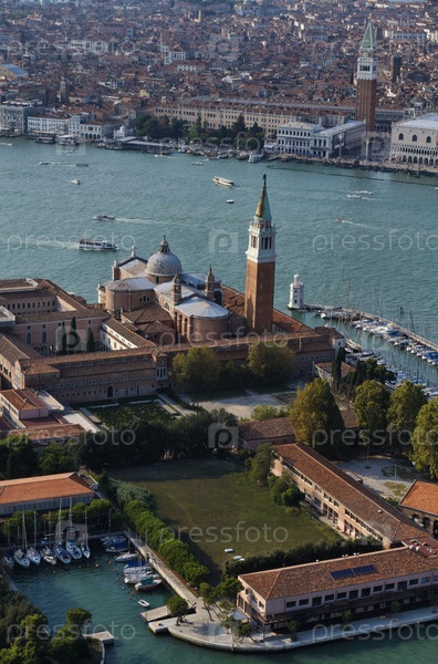 Италия, Венеция, аэрофотоснимок города, собор св. Марко и собор св. Джорджо Маджоре на острове св. Джорджо Маджоре