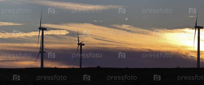 Италия, Сицилия, сельская местность вблизи Мадзара дель Валло. Ветрогенераторы на закате