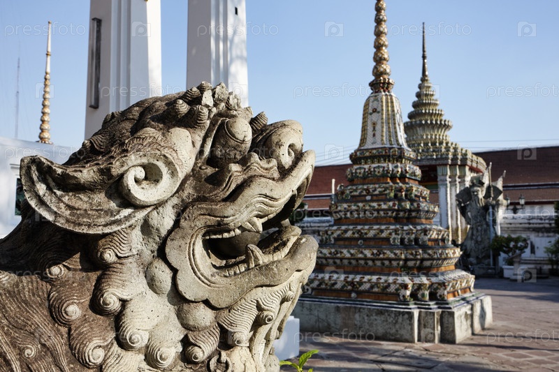 Таиланд, Бангкок. Храм Будды, каменная статуя дракона