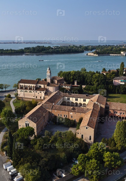 Италия, Венеция, аэрофотоснимок монастыря Святого Николо ди Лидо на острове Святого Николо ди Лидо
