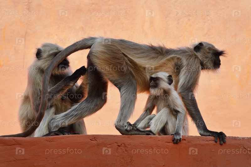 Индия, Раджастхан, Джайпур, индийские обезьяны в Форте Амбер