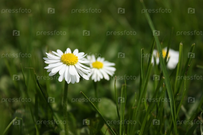 Белые ромашки в зеленой траве