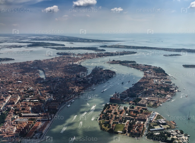 Италия, Венето, аэрофотоснимок Венеции и Венецианской лагуны