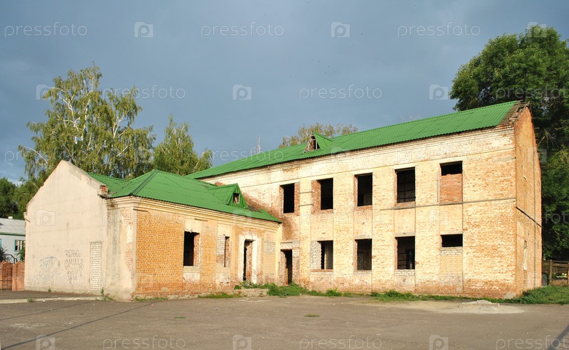 Полуразрушенный кирпичный дом