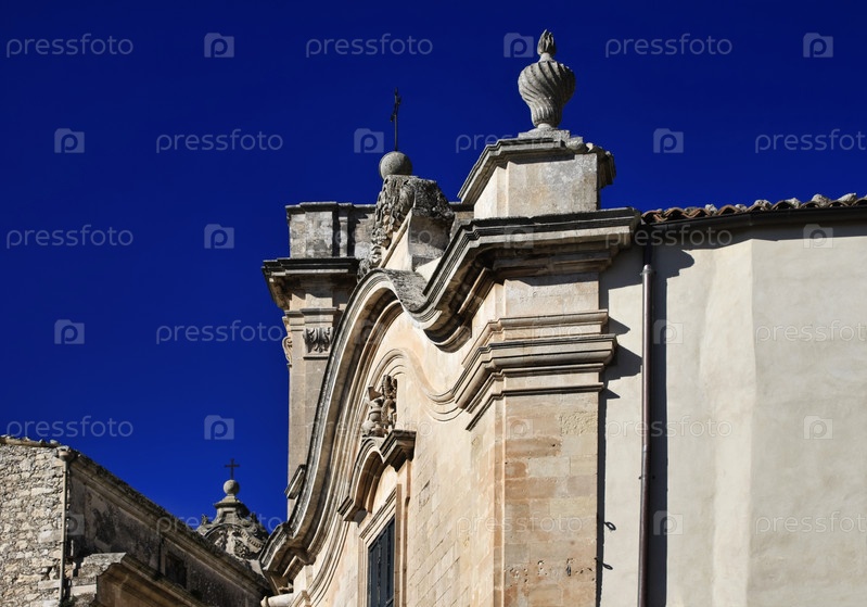 Италия. Сицилия, Рагузы Ибла, орнаменты в стиле барокко на крыше церкви