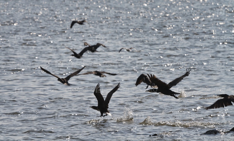 Летающие птицы над водой