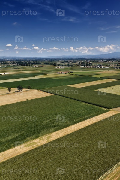Италия, Пьемонте, сельская местность, аэрофотоснимок поместья и возделываемых полей