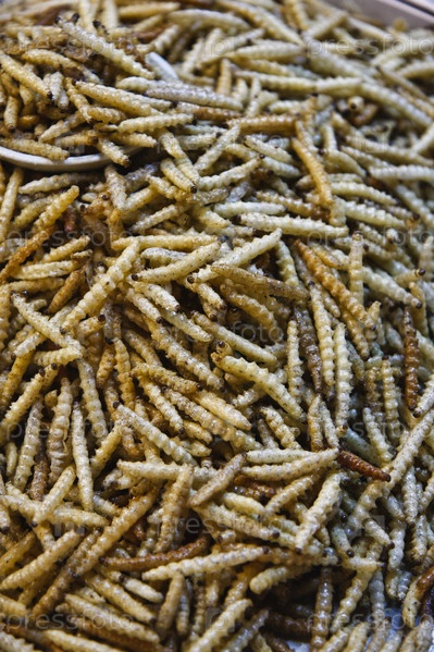Таиланд, Лампанг, жареные черви для продажи на местном рынке