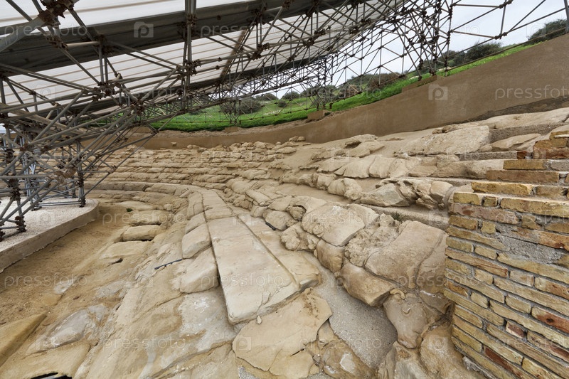 Италия, Сицилия, Эраклеа Миноа (провинция Агридженто), археологический район, руины греческого амфитеатра