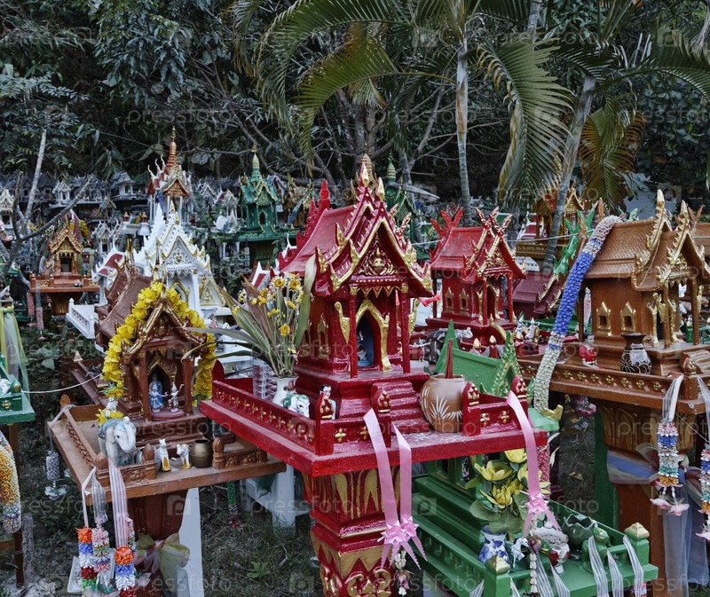 Таиланд, Аюттхая, миниатюрные храмы, оставленные в священном месте тайскими жителями в память об умерших родственниках