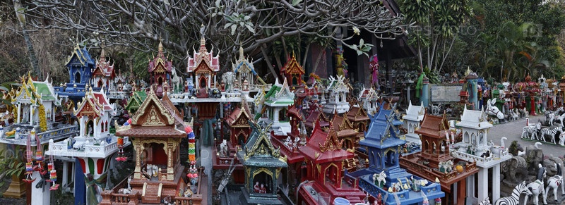 Таиланд, Аюттхая, миниатюрные храмы, оставленные в священном месте тайскими жителями в память об умерших родственниках