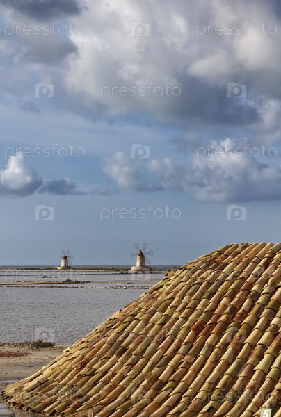 Италия, Сицилия, Марсала (Трапани), солончаки Моция и ветряные мельницы