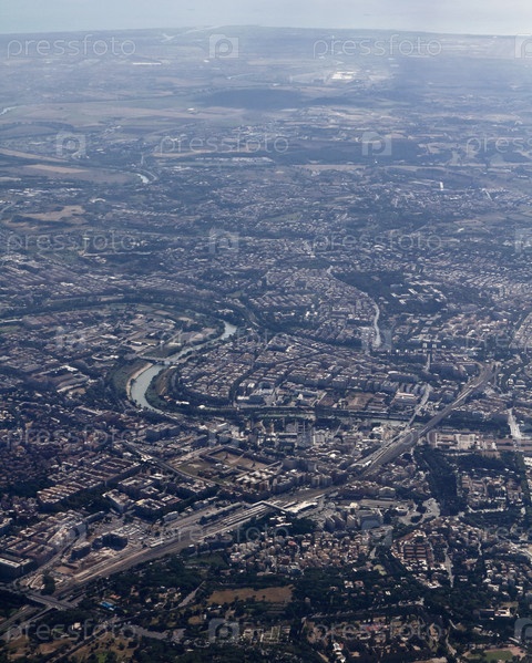 Италия, Лацио, Рим, аэрофотоснимок города и реки Тибр