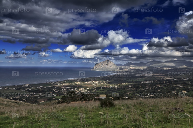 Вид на гору Кофано и Тирренское побережье недалеко от Эриче (Трапани)