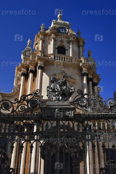 Италия, Сицилия, Рагузы Ибла. Собор Святого Георгия, железная статуя Святого Георгия на входных воротах