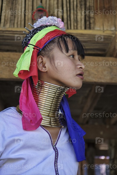 Молодая женщина в традиционном костюме деревни Каян, Таиланд, Чианг Май