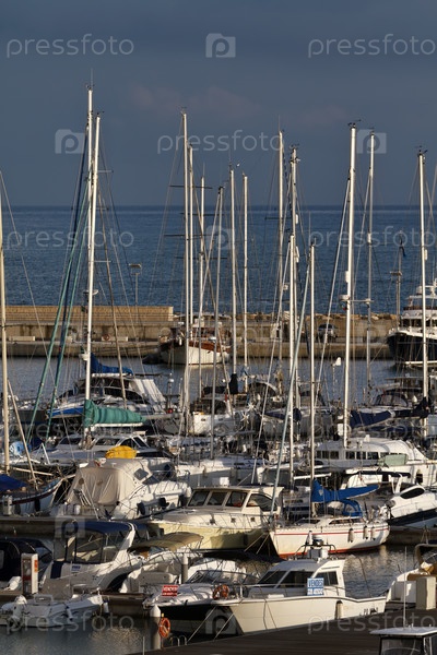 Италия, Сицилия, Средиземное море. Роскошные яхты у пристани