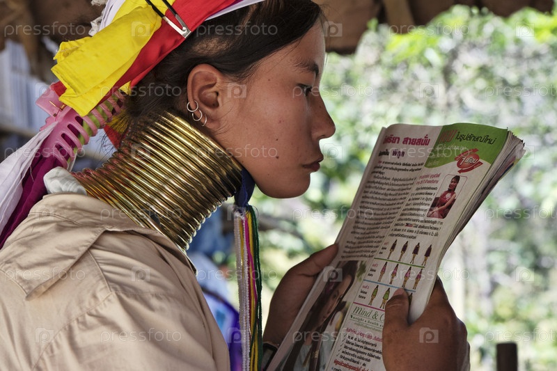 Древнее племя. Женщина в традиционном костюме с латунными кольцами на шее. Таиланд, Чанг Маи