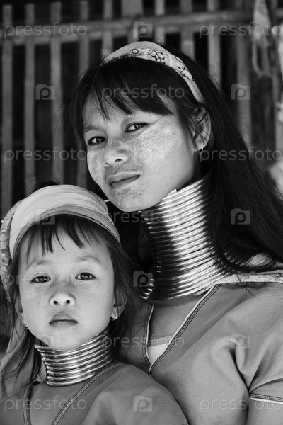 Древнее племя. Женщина в традиционном костюме с латунными кольцами на шее. Таиланд, Чанг Маи