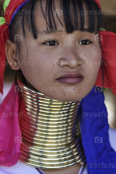 Молодая женщина в традиционном костюме деревнии Каян, Таиланд, Чианг Май