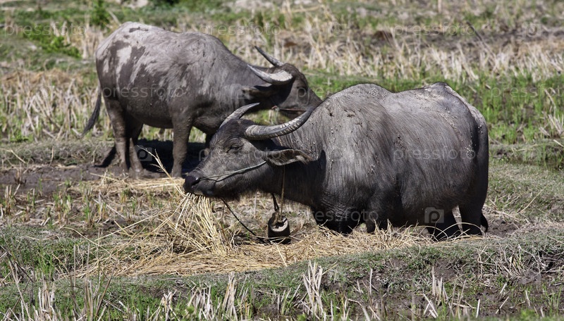 Таиланд, Чианг Май, Бан Тонг Луанг, деревня Карен. Буйволы в поле