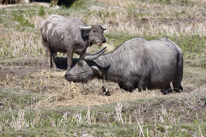 Таиланд, Чианг Май, Бан Тонг Луанг, деревня Карен. Буйволы в поле