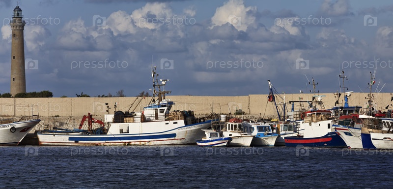 Италия, Сицилия, Тирренское море. Рыболовные суда в порту Сан-Вито-Ло-Капо (Трапани)