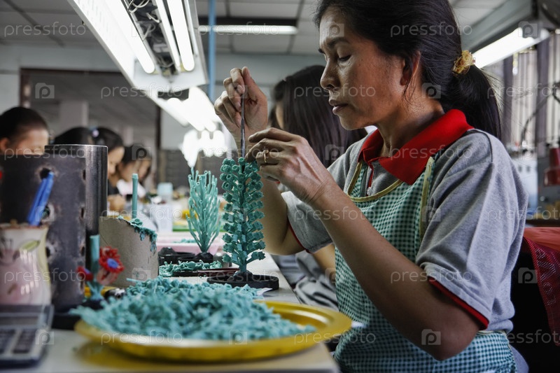 Таиланд, Бангкок, тайская женщина делает скульптуру из воска на фабрике