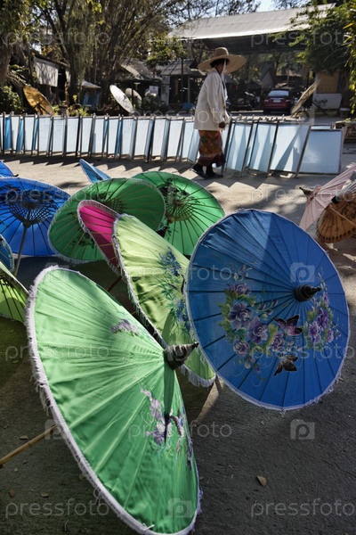 Таиланд, Чианг Май. Тайские зонтики для продажи сушатся на солнце