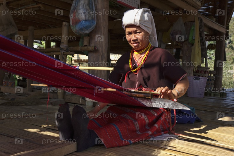 Таиланд, Чианг Май. Женщина из древнего племени в традиционном костюме ткет ковер